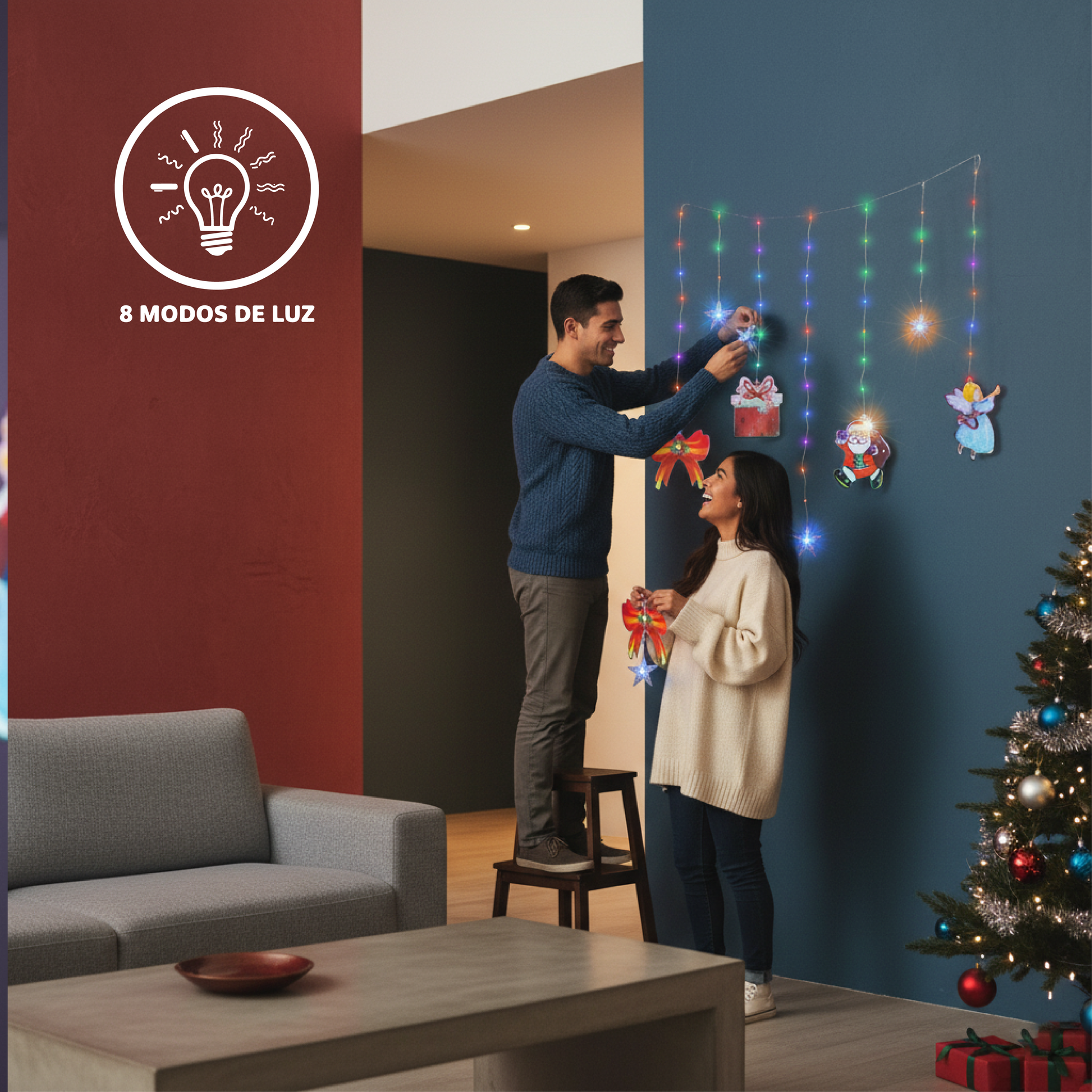Luces colgantes pequeñas de 5W con enchufe directo a 110V, ideales para crear ambientes versátiles. Cuenta con 8 velocidades de luz ajustables que te permiten personalizar la intensidad según tus necesidades. Presenta una serie de colores vibrantes para adaptarse a cualquier decoración. Con 3 metros de cable y enchufe trasero, su instalación es práctica y directa. Perfectas para iluminar espacios interiores con estilo y eficiencia energética.